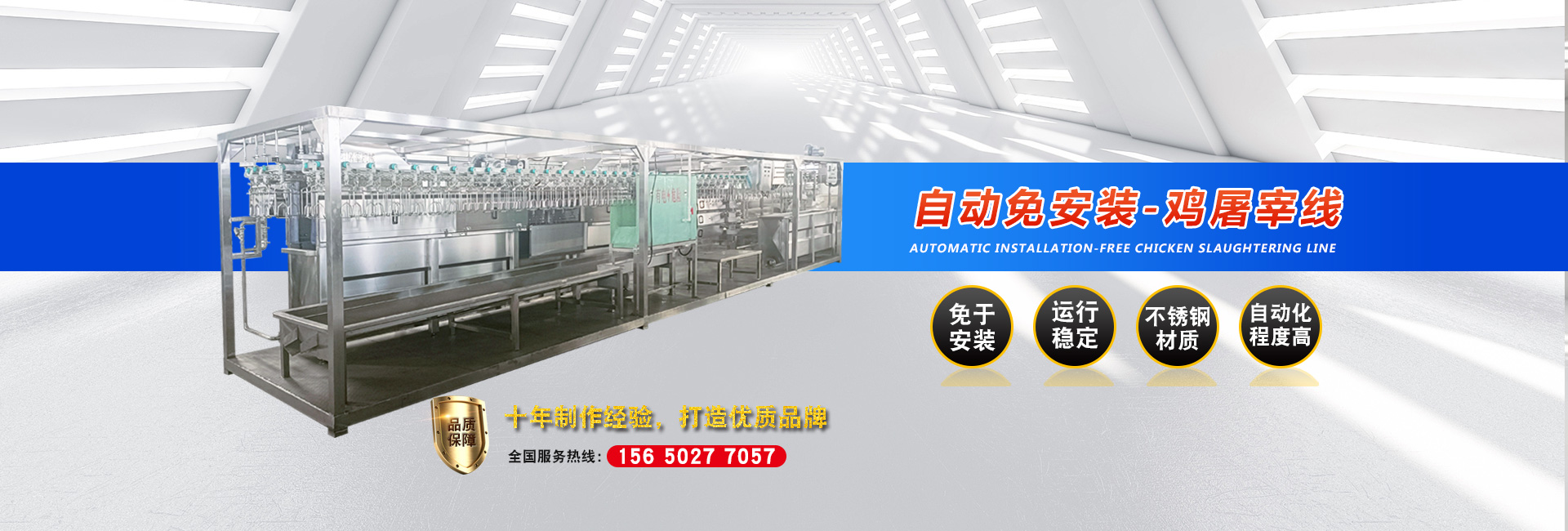 公司長(zhǎng)期與國(guó)內(nèi)外屠宰加工企業(yè)合作,走引進(jìn)——消化——?jiǎng)?chuàng)新和自主研發(fā)相結(jié)合的道路,在國(guó)內(nèi)外同類產(chǎn)品的基礎(chǔ)上,不斷更新和改造。公司主要設(shè)備有:A字型立式脫毛機(jī)、臥式脫毛機(jī)、強(qiáng)力噴淋機(jī)、松毛機(jī)、浸燙池、螺旋預(yù)冷機(jī)、禽籠清洗機(jī)、電暈機(jī)、兔扯皮機(jī)、兔割前爪/后爪機(jī)、剝胗機(jī)、自動(dòng)洗鉤機(jī)、螺旋燙爪機(jī)、雞爪脫皮機(jī)、分割輸送帶等屠宰用設(shè)備。其中,公司獨(dú)力發(fā)明生產(chǎn)設(shè)計(jì)的“電動(dòng)調(diào)節(jié)脫毛機(jī)”及“自動(dòng)控水控溫浸燙池”順利通過知識(shí)產(chǎn)權(quán)局的實(shí)質(zhì)性審查。公司所生產(chǎn)的設(shè)備 可與國(guó)外同類產(chǎn)品配套使用,設(shè)備遠(yuǎn)銷阿爾及利亞、澳大利亞等中東、非州等并建立了長(zhǎng)期穩(wěn)定的合作關(guān)系。